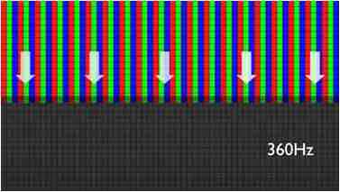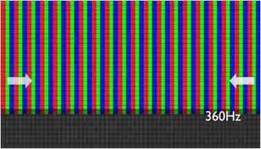 传统液晶驱动是从左到右单向进行,,在画面更新速度愈来越愈快的情况下,,,,位于驱动线路末端的右下角区域,,,画素的闸极来不及在短时间内获得足够电压,,,,无法显示出正确的颜色资讯。。。